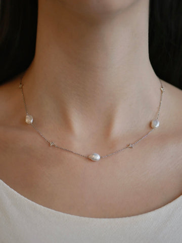 Anzie | Emilia Gothic Star Baroque Pearl Necklace in Silver