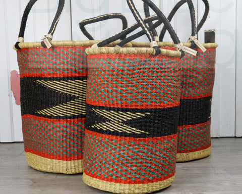 Big Blue Moma | Tall Laundry Basket - Warm Reds & Black