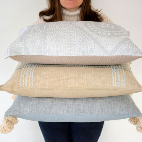 Confident in colour and rich in texture, the Bora Tassel Pillows are characterized by slub cotton weaves and oversized hand knotted tassels running down two edges. They are eye catching statement pieces in any room. Complete with a premium feather down filler for fabulous fluff factor and comfort you'll want to sink your head into. Machine Wash Gentle.