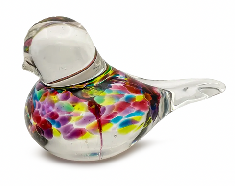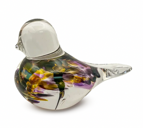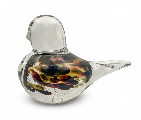 Blown glass nesting birds stand on their own, or look cute in pairs or groups. Each hand blown glass chickadee has a bubble vortex encased in crystal at its centre. Durable and handmade for heirloom quality, a classic collectors item. An example of the beauty of the materials used and excellent craftsmanship.
