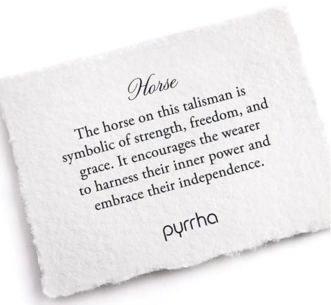 The horse on this talisman is symbolic of strength, freedom, and grace. It encourages the wearer to harness their inner power and embrace their independence.