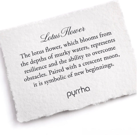 The lotus flower, which blooms from the depths of murky waters, represents resilience and the ability to overcome obstacles. Paired with a crescent moon, it is symbolic of new beginnings.