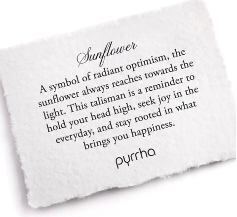 A symbol of radiant optimism, the sunflower always reaches towards the light. This talisman is a reminder to hold your head high, seek joy in the everyday, and stay rooted in what brings you happiness.