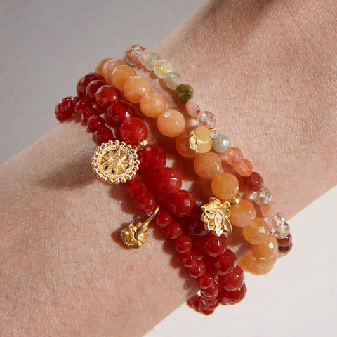 From each obstacle on our path to truth, we become stronger for having to overcome them. A gemstone bracelet of carnelian—stone of confidence and strength—empowers its wearer while a delicate golden Ganesha charm pays homage to the Hindu god of good fortune and the remover of obstacles. Wear this stretch bracelet alone, or stack it with other healing gemstone bracelets for a truly personalized look.